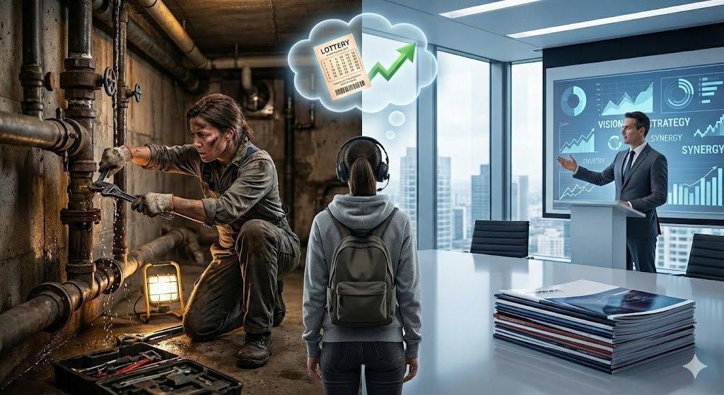 나뿐 아니라 대다수의 사람 역시 실은 배관공 일을 더 즐기리라 생각한다. 매일 실질적인 문제를 해결하는 과정에서 오는 즉자적인 손맛 혹은 조작감이 진짜 만족감을 주기 때문이다. 하지만 배관공으로 일하면 시다바리 취급을 받으며 괄시당하기 일쑤고 제대로 된 평가도 받지 못한다. 반면 정치가 일을 하면 승진 평가권을 쥔 경영진과 밀착해서 일한다. 요구되는 정량 스펙도 높고 경영진 노출도도 높으니, 일의 실질이야 어떻든 엘리트 코스이자 승진의 지름길로 여겨져 많은 사람들이 그런 업무를 탐내고 배관공을 무시한다.